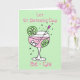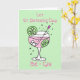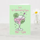 Ilustração bonita de gin rosa em um copo com bolhas, cubos de gelo, fatias de limão e um misturador em cores pastéis delicadas. Personalize facilmente este cartão editando o texto do modelo. As mensagens atualmente dizem 'Deixe o Dia de São Patrício be-gin' e dentro 'Feliz Dia de São Patrício'. Obrigado por visualizar meus designs!