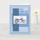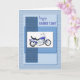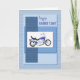 Um ótimo cartão para o Dia dos Pais. Uma motocicleta azul em um fundo azul abstrato. A frente diz "Feliz dia dos pais". Um ótimo cartão para alguém que é um entusiasta de motocicletas. As texturas na frente deste cartão são impressas.