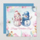 Um simples cartão do Dia dos Namorados com um casal de boneco de neve fofo (uma menina e um menino) cercado por flores cor-de-rosa em aquarela. Tema de inverno. Edite usando a Ferramenta de Design para mover/redimensionar os elementos deste design e torná-lo seu.