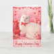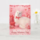 Esta é uma foto do meu gato branco com um olho azul e outro verde. O nome dele é Snow, e ele é uma beleza! Este é um cartão de dia dos namorados cor-de-rosa com corações, presentes e rosas.