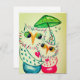 Cartão do dia dos namorados, corujas em aquarela