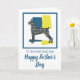 Silhueta do cão Doberman Pinscher / Dobbie em padrão de linhas de grade modernas em amarelo, azul e preto. ‘Para o melhor pai de cachorro’ e ‘Feliz Dia dos Pais’ do lado de fora e mensagem adorável dentro pode ser alterada para o que você quiser. Uma ótima maneira de celebrar o Dia dos Pais de um amante de animais de estimação.