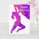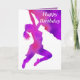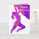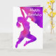 caracterizar o cumprimento (customizável) "feliz aniversario" na parte dianteira e em uma silhueta enchida arte abstracta de uma escalada da mulher, por VAGABUNDOS de J.M.Tellam (hons), com texto customizável atualmente "tem um aniversário maravilhoso" assim que você pode escrever sua própria mensagem na mesma pia batismal do estilo para dentro