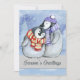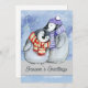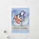 Este é um cartão bonito do pinguim para os feriados. Caracteriza dois pinguins doces, um vestindo um lenço vermelho e branco e o outro com um lenço roxo e branco. O pinguim do menino está vestindo um beanie roxo com um pompom branco. O olhar dois como pássaros verdadeiros do amor! O texto lê da "os cumprimentos estação". As cores do fundo são lavanda azul pálido e macia. O cartão do feriado do pinguim é inteiramente customizável permitindo que você adicione suas próprias cores do texto e do fundo. Clique simplesmente o botão da personalização para personalizar o design. As características deste design igualmente em uma variedade de outros produtos tais como etiquetas, Tag do presente, caixas do favor, etiquetas, placas de papel e removem caixas.