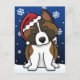 Envie a cartão do Natal de Akita a todos seus amigos animal-loving este ano! Uns desenhos animados bonitos de akita do kawaii da jovem corça sentam-se em cima da neve recentemente caída que veste um boné do papai noel, quando os flocos de neve derivarem delicadamente abaixo toda ao redor dele.