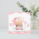 Celebre os momentos especiais do seu pequeno com o nosso cartão de primeiro Dia dos Namorados da Bebê Menina. Com um ursinho fofo cercado por corações e uma paleta de rosa suave, este design encantador é perfeito para comemorar o 1º Dia dos Namorados do seu bebê.