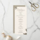 Adicione um pouco de elegância eterno à sua cerimônia de casamento com este cartão do programa de casamento da monstera em champanhe e tons de ouro. Perfeito para casais modernos, este programa destaca a festa de casamento, a ordem das cerimônias e obrigados especiais em um layout refinado. Um belo guardião para os hóspedes apreciarem.