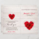 Rosa vermelha em forma de coração no programa de dobradura de livros de madeira. Você terá que dobrar manualmente este cartão de programa. Produtos correspondentes disponíveis. Procure "hhn01" para ver todos os produtos com esta design de rosa vermelha elegante/romântica. O programa de casamento do cartão de rack de 4" x 9" também está disponível em nossa coleção.