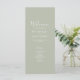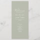Esta carta do Programa para o Dia do Casamento, simplesmente projetada e deslumbrante, apresenta um design elegante, moderno e mínimo tipográfico com um tema verde sábio. Pronto para personalizar com os detalhes da cerimônia do Dia do Casamento. Por favor, navegue no pacote de casamento mínimo Elegante verde Sage para obter itens de papelaria correspondentes.