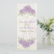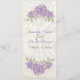 Cartão do programa de cerimônia de rosas roxas de bellflower vírgula. Faça uma impressão duradoura com este belo design floral, que apresenta belos rosas roxos de girassol no estilo vintage e folhas verdes em fundo verde. Imprima sua família, parentes e amigos. Romântica e sofisticada mas contemporânea ao mesmo tempo. Uma abordagem moderna a uma imagem antiga. Personalize com seu texto. Excelente para um casamento do tema primavera/jardim de verão.