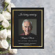 Um elegante programa de 2 páginas. Fundo preto, falso quadro de ouro e espaço para uma foto. Personalize e adicione nome, datas e texto. 1 folha = 1 programa impresso borda a borda.
