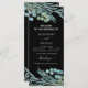 Eucalyptus Greenery Succulent Botanical Watercolor Program Cards com fundo preto - inclui uma bela e elegante tipografia com folhas botânicas modernas e verde para a celebração especial do dia do casamento.