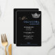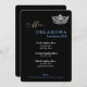 Estilo criado para uma nova configuração divertida para o seu evento de concurso ou almoço. Mostrado em preto clássico na frente e atrás em papel de qualidade fina, este programa/cartão de menu tem um tipo de coroa estilo Miss América no canto superior. Texto no centro. Arranjamento. Nós criamos a modelo para você, simplesmente mude a informação para a sua, no lado direito da tela, no menu de seleção. Personalize ainda mais, se desejar, alterando a seleção de papel, as cores de texto ou texto, os estilos de texto ou carregando sua própria imagem. Escolha encantadora para recepções, festas de aposentadoria, festas de concurso, bolas, almoços, eventos, casamentos ou eventos veteranos.
