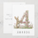 Torne o 4º aniversário de um pequeno especial com este charmoso cartão, apresentando uma delicada ilustração em aquarela do número 4, lindamente feito de minúsculas flores pastéis coloridas. Um coelhinho fofo está ao lado do número, mordiscando alegremente as flores, adicionando um toque de doçura e alegria ao design. Seja você um pai, avô ou amigo da família, este cartão encantador certamente trará um sorriso tanto para o pequeno quanto para seus entes queridos.