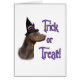 Serão truques ou ameaças neste Halloween? Nosso design de Natal tem sua raça favorita de cachorro, o Doberman Pinscher, vestindo um chapéu de bruxa. Adicione um pouco de 'Hocus Pocus' a All Hallows este ano!
