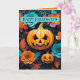 Deseje um Feliz Halloween com este padrão de Jack-o-lantern e flores. Dentro há uma área para você adicionar sua mensagem.
