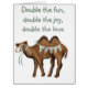 Traga um sorriso aos rostos de novos pais com esta ilustração doce e encantadora de um camelo com duas saliências, perfeita para celebrar a chegada de gêmeos! A design apresenta camelos brincalhões, com uma mensagem emocionante que diz: "Dobre o amor, duplique a alegria, duplique o amor!" Quer você esteja procurando o cartão perfeito para um chá de fraldas, um anúncio de recém-nascido, ou parabéns simples, este duo de camelo bonitinho certamente aquece os corações e adiciona um toque de capricho a qualquer ocasião.