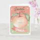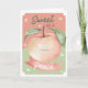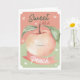 Envie um pouco de doçura com este cartão de cumprimentos de aquarela "Tão doce quanto um pêssego". Com uma ilustração de pêssego pintada à mão com tons de rosa suave, folhas verdes suaves e um rosto sorridente alegre, este design traz calor e charme para qualquer ocasião.