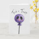 Este cartão de saudação caprichoso de Halloween apresenta uma ilustração encantadora em aquarela de um pirulito com um rosto brincalhão, acompanhado pelo texto manuscrito "Trick or Treat?" As cores pastéis suaves e o design minimalista criam uma aparência doce e convidativa, perfeita para enviar saudações de Halloween para amigos e familiares. O estilo fofo e alegre torna este cartão de saudação uma escolha ideal para aqueles que gostam de uma abordagem divertida e suave para o Halloween.