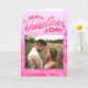 Este cartão de Dia dos Namorados apresenta uma tipografia manuscrita vibrante "Feliz Dia dos Namorados" com uma foto de um casal em um fundo de pelúcia rosa. Você pode