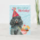 Feliz aniversário com este design bonitinho com um bonitinho e festeiro Toy Poodle, que veste chapéus com um sorvete. O texto pode ser facilmente alterado; basta clicar no botão personalizar.