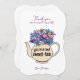 Expresse sua gratidão em estilo com esta adorável festa de chá, obrigado, cartas! Apresentando uma charmosa design de bule de chá e uma mensagem punny que diz "Obrigado por vir à minha festa, você é um verdadeiro chá doce!", estas cartas são a forma perfeita de mostrar aos seus convidados o quanto apreciaram a sua presença. Além disso, com texto personalizável, você pode personalizar facilmente cada cartão com seu nome e uma mensagem sincera. Mande seus convidados para casa com um sorriso no rosto e um cheio cardíaco de memórias quentes, ou use como notas para enviar aos convidados para obrigado-los para seus presentes! Downloads disponíveis para personalização sem complicações - economize tempo e dinheiro e envie instantaneamente suas notas ao obrigado digitalmente!