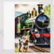 Cartão Dog Greeting steam train