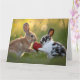 Cartão Dois Coelhinhos Compartilhando um Grande Morango M