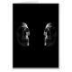 Uma fotografia de dois crânios humanos sorridentes virados um para o outro.