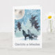 Cartão de Natal Dois Lobos Uivando Para Uma Lua de Inverno - apresentado em um cenário de neve florestal - cartão de cumprimentos da Ricaso - adicione facilmente seu próprio texto