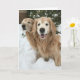 Querida, está frio lá fora! Este cartão apresenta uma fotografia de dois cães que se recuperam de ouros, sentados na neve. Um até tem uma picada pendurada no queixo! Texto personalizável na dentro diz: "Feliz inverno!"