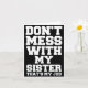 Cartão Don't Mess With My Sister That's My Job Funny Sist