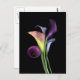 Os cartão elegantes do lírio de calla caracterizam lírios de calla em um fundo preto.