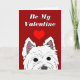 As montanhas ocidentais bonitos Terrier enfrentam espreitar para fora com um coração acima de sua cabeça. Cor customizável do texto e do fundo.