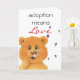 este cartão bonito dos parabéns da adopção é de um sapo pequeno por duas flores. A adopção é forever.