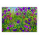 Impressão de uma pintura de wildflowers coloridos do campo de Ohio nas máscaras de verde, de azul, de roxo e o vermelho pelo estúdio de ronrom de dois gatos.