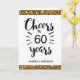 Um cartão de aniversário personalizado de 60 anos para seu aniversário de 60 anos. A frente apresenta um design de brilho dourado e a idade e o nome podem ser facilmente personalizados. A mensagem da dentro também pode ser personalizada. Observe que não há brilho real neste produto, mas um efeito de design de brilho.