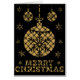 Escolha entre designs deliciosos nestes Cartões de Natal com um padrão de xadrez preto e ouro atrás de um padrão de recorte preto com uma mensagem de Natal