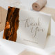 Este elegante e moderno cartões de agradecimentos de casamento apresenta uma cor de água laranja queimada, aparada com brilho de ouro falso. O texto personalizável combina as palavras "Obrigado" em um guião de manuscrito dourado e os nomes da noiva e do noivo em itálico em um fundo de marfim.