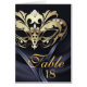 Adicione um toque da mágica a seu casamento com nossos cartões Dourados do número da mesa do preto do mascarada. Revestimento bonito do interior se você gostaria de adicionar uma mensagem pessoal para convidados. Note por favor todas as jóias, metais, etc. são um efeito impresso. Veja estilos maiores do casamento em TheInspiredEdge.com