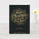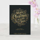 Enviar saudações festivas em estilo com este cartão luxuoso dobrado com design elegante preto e ouro com roteiro de caligrafia. Perfeito para desejar à família, amigos ou colegas um Feliz Natal e um Feliz ano novo. Uma escolha de chic e eterno para comemorações de feriado.