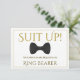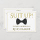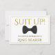 Use este cartão de apresentação do Ring Bearer para pedir ao seu amigo especial, irmão ou outro membro da família para ser o Ring Bearer no seu casamento. Projetado para coordenar com a nossa Suíte de Casamento Elegante de Folha de Ouro, ele apresenta uma imagem de uma gravata de arco preta sobre um fundo prateado e diz: "Encaixe! Seus Serviços são Solicitados como Portador de Anéis" Há um espaço para inserir uma nota especial perguntando "você será meu Portador de Anéis?" assim como os nomes dos casais de casamento e a data do casamento. Todos os campos são totalmente personalizáveis.