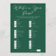 An emerald green bridal shower game What's In Your Purse for an outdoor forest party. Personalize these trendy downloadable cards with your own point options for your friends. A fun customizable bachelorette party game with a minimalist solid color scheme.