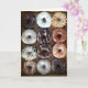 Uma foto de uma dúzia de rosquinhas, incluindo o popular cartaz com bacon! O dentro diz Feliz Aniversário com aspersores no topo! O texto pode ser personalizado para outras ocasiões, sinta-se à vontade para usar seus trocadilhos de rosquinha para personalizar este cartão e adicionar humor.