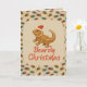 Este cartão de Natal excêntrico apresenta um dragão-barbudo estilo biscoito de gengibre usando um chapéu de Papai Noel com o trocadilho divertido "Beardy Christmas" (Feliz Natal Barbudo), cercado por baratas festivas com laços coloridos. Uma reviravolta divertida nos cumprimentos tradicionais de Natal, este cartão é perfeito para amantes de répteis, fãs de animais exóticos ou qualquer pessoa que goste de humor de Natal único. Compartilhe a alegria festiva com este cartão incomum e memorável, ideal para enviar a amigos e familiares que apreciam o estilo excêntrico.