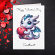 Um cartão de Dia de os namorados bonito para um casal. Na frente do cartão há um dragão segurando um coração e a dentro tem um coração para o qual você pode carregar sua foto favorita de casal na área de personalização.