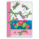 Pequenos helicópteros com suas asas de filigrana saem entre lírios por locais ao lado da água. representam os dias de halcyon da Summer. Este cartão de verão com Dragonflies e Lily em cor azul-profunda, aqua, verde e magenta. Perfeito para os desejos e saudações de Verão. Também faz um belo cartão para os Aniversários, Obrigado, simpatia e por muitos outros eventos e sentimentos