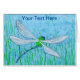 Um lápis de aquarela e cor ACEO de uma libélula verde e azul escaneando as gramíneas para presas.