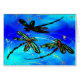 Lindas libélulas metálicas sobre fundo azul elétrico.