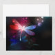 Luminosa, voadora, libélula vermelha, com asas transparentes e detalhadas sobre fundo escuro, noturno, luminoso com plantas tropicais e vagalumes. libélula vermelha.